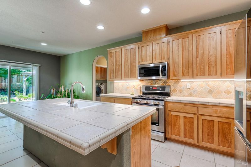 - Island, Island w/Sink, Kitchen/Family Combo, Pantry Cabinet, Tile Counter