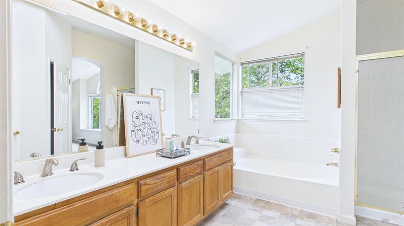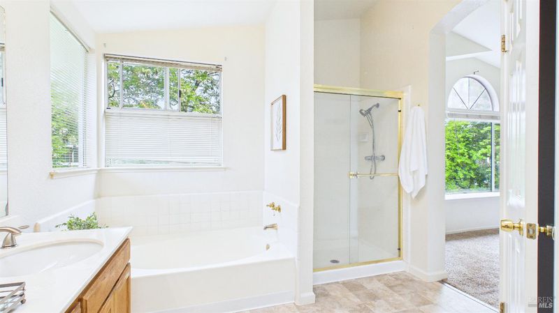 - Double Sinks, Shower Stall(s), Tub, Walk-In Closet, Window