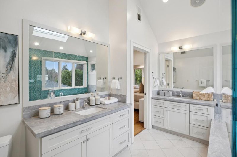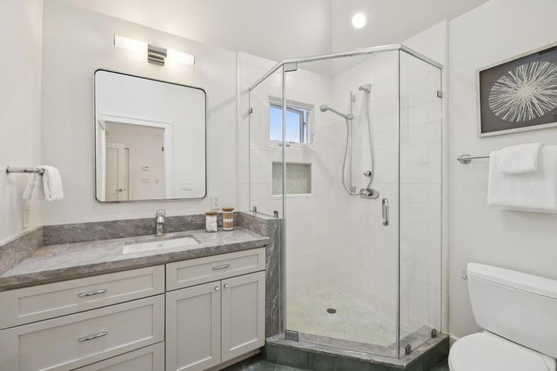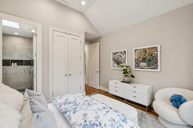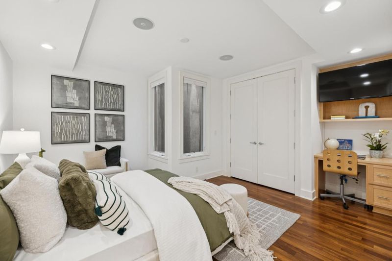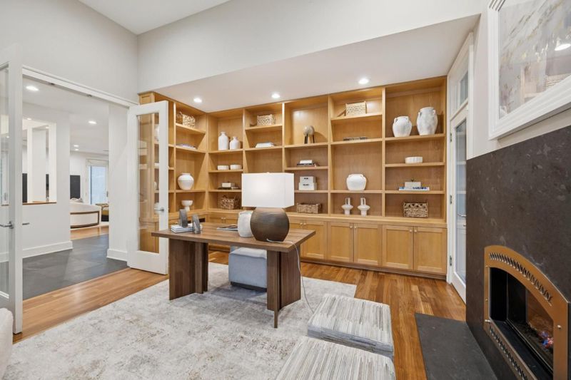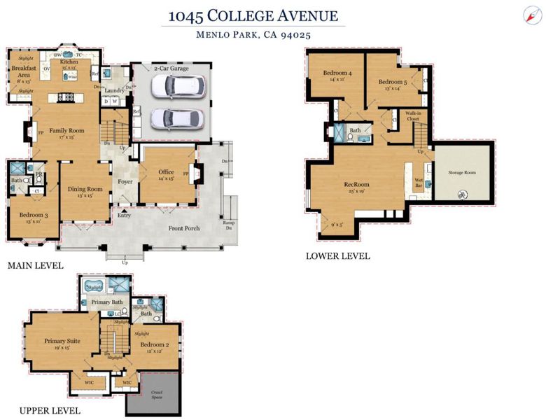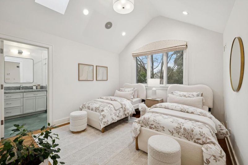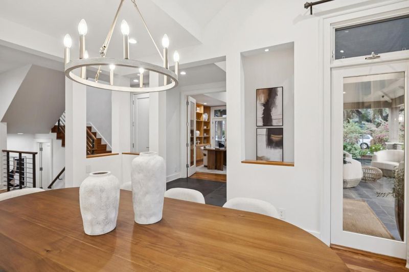 Located in the coveted Allied Arts neighborhood, this residence offers sophisticated contemporary living just blocks from downtown Menlo Park, Palo Alto, Stanford University, parks, shopping & dining. Spanning three levels, the home features 5 bedrooms & 4.5 baths, soaring ceilings, abundant natural light & a timeless modern aesthetic. A wrap-around front porch welcomes you into a foyer anchored by a private executive office with fireplace, built-ins & French doors for convenient guest access. An elegant dining room with transom windows provides an inviting setting for gatherings of family & friends. The open kitchen-family great room forms the heart of the home with granite slab counters, center island, stainless appliances, breakfast area & seamless backyard access for effortless indoor-outdoor living. A main-level guest suite, powder bath & mudroom with laundry complete this level. Upstairs includes a vaulted primary suite with soaking tub & walk-in closet plus an additional en suite bedroom. The lower level offers a spacious recreation room with wet bar & counter seating, two bedrooms, bath & generous storage. A private, tranquil backyard with slate terrace, hardwood floors, 2-car garage & access to top-rated Menlo Park schools complete this rare Silicon Valley offering.