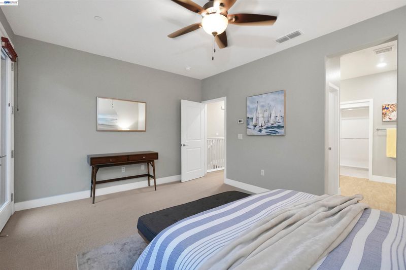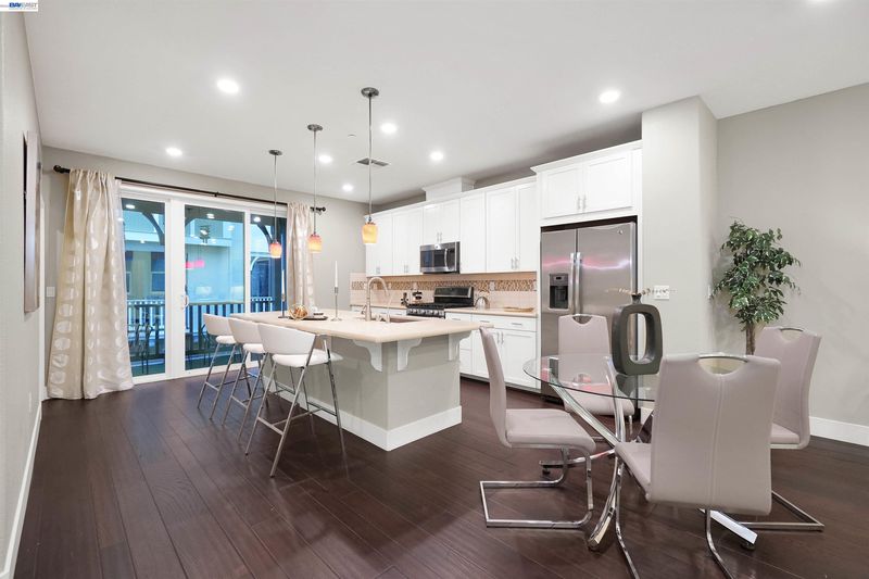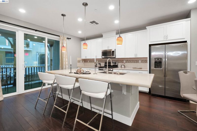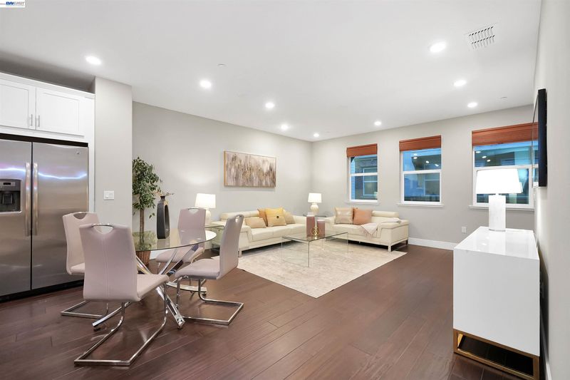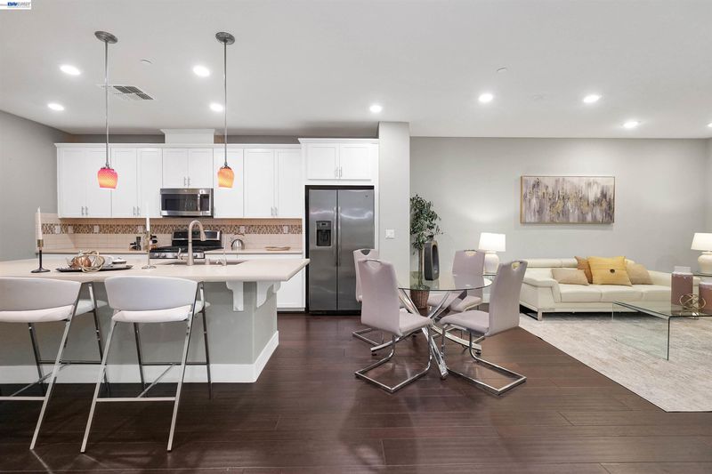 Welcome to this beautifully upgraded EAST Facing, 3-bedroom, 3.5-bath townhome-style condo offering the perfect blend of style, functionality, and convenience. Step into a spacious, open-concept living space featuring elegant hardwood flooring and a spacious island kitchen—ideal for cooking and entertaining. The kitchen showcases quartz countertops, Full backsplash, premium white cabinetry, and GE stainless steel appliances, combining both beauty and practicality. Each bedroom features its own attached bathroom, ensuring comfort and privacy for all. A desirable first-floor bedroom with a full bath is perfect for guests, extended family, or a home office. The primary and secondary bedrooms include custom closet systems for added organization. Enjoy outdoor living on the large balcony patio—perfect for relaxing or hosting gatherings. This home is packed with premium upgrades, including a Tesla charger, water softener, reverse osmosis drinking water system, and Hunter Douglas window shades. The garage is a standout feature with epoxy flooring, built-in storage cabinets, and a projector setup for added versatility. Conveniently located near schools, shopping, dining, hospitals, BART, and major freeways, this home offers exceptional accessibility for commuters and everyday living.