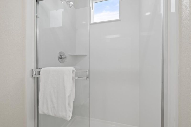 - Double Sinks, Shower and Tub, Solid Surface, Stall Shower, Tile, Tub, Updated Bath