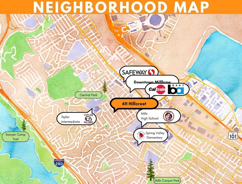 The SINGLE MOST BEAUTIFUL home in all of Millbrae! First time on market in 64years!!! Rich in character and architectural charms, this home welcomes you with a grand opening: lots of archway, exposed wood beams, soaring ceiling, all highlighting the homes superb styling and exquisite details. The living room features a stunning grand arch window and cozy fireplace. Refinished original hardwood flooring throughout. A spacious dining/family room flows seamlessly into the kitchen and opens directly to the backyard. Breakfast nook could be easily opened up for an open kitchen if needed. Upstairs, two HUGE bedrooms share a classic bath, while the private primary ensuiteset apart by a short half flight of stairsoffers a peaceful retreat complete with a walk-in closet. Each bedroom opens to its own private balcony, creating enchanting indoor-outdoor moments. The backyard is surrounded by mature fruit trees and blooming camellias. Huge garage with a 1/4bath provides tons of potential. Enjoy a superb location with most conveniences nearby: just steps from Central Park and the new rec center, walking distance to dtwn Millbrae, award-winning schools, and the Spur Trail. Mins to BART, Caltrain, SFO, 101 & 280 an extraordinary opportunity to own a true architectural gem!