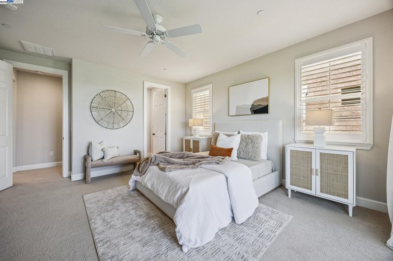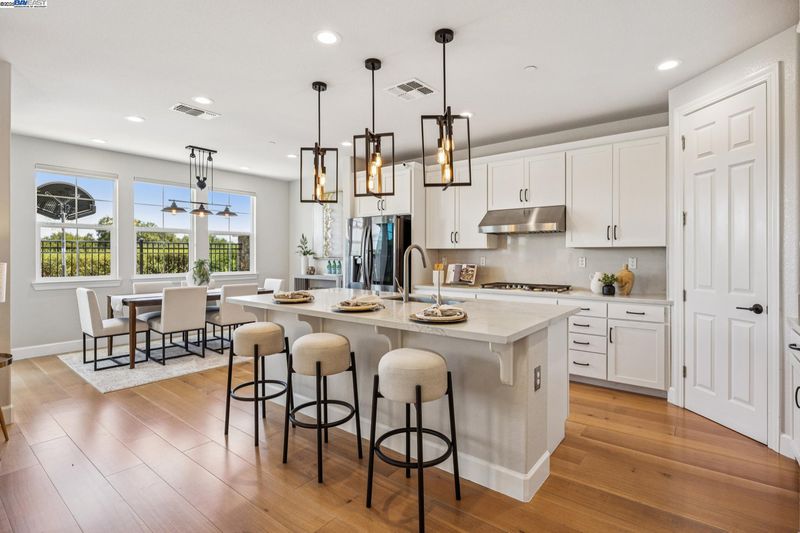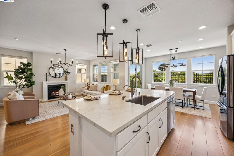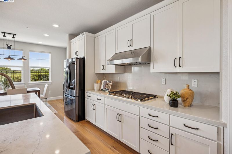 Situated along the lush fairways of the Stonebrae Country Club golf course, this rarely available 4 bed, 3 bath, 2,278 sq ft home offers serene views, modern elegance, and resort-style living in one of the Bay Area’s most prestigious gated communities. With no rear neighbors and just a short walk to the luxurious clubhouse, this home offers the best of comfort and convenience. The open-concept great room welcomes you with warm natural light, rich wood flooring, and a cozy gas fireplace. The chef’s kitchen is a true showstopper, featuring a sprawling center island, crisp white cabinetry, quartz countertops, stainless steel appliances, and designer lighting. The adjacent dining area is perfectly positioned to enjoy tranquil golf course views through expansive windows. A rare and desirable ground-level bedroom and full bath provide flexibility for guests, extended family, or a private home office. Upstairs, you’ll find a spacious loft, two secondary bedrooms, a full bath, and a convenient laundry room. The luxurious primary suite serves as a private retreat with two large walk-in closets, a spa-inspired bathroom with a sunken tub, dual sinks, and a balcony that looks out over the fairways. As one of the most affordable homes in Stonebrae, this property delivers exceptional value.