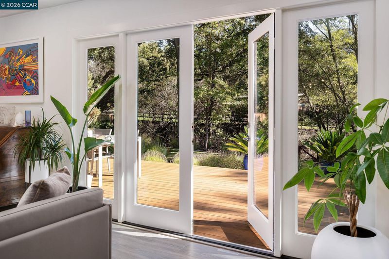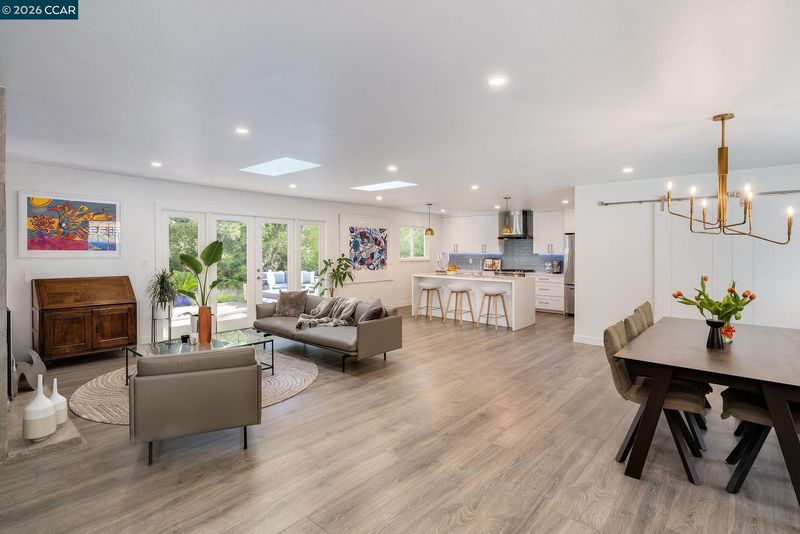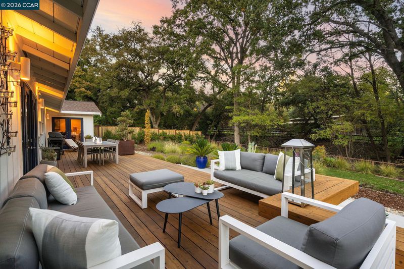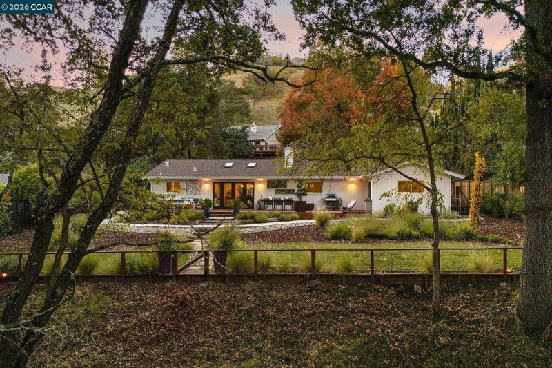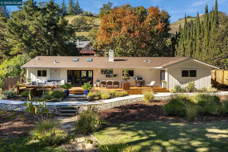 1886 Green Valley Road is a completely renovated single story 4-bed, plus den/office, 2-bath home, where mornings begin with birdsong, sunlight filtering through the leaves, and a gentle connection to nature just beyond your windows. This home sits on a generous almost 1/2 acre lot with a creekside setting. The chic, light filled open floor plan features new LVP flooring throughout, a stunning kitchen with quartz countertops and oversized island with seating, and beautifully updated bathrooms. The family room has a new fireplace insert and French doors that open to the backyard, creating a seamless indoor/outdoor living space featuring a newer redwood deck, gardens, lawn area, mature oak trees and facing a peaceful creek - the perfect place for morning coffee or dining under the stars. Other updates to the home include new fencing, HVAC and a Tesla backup battery. This home offers a blend of modern luxury and natural surroundings with Macedo Ranch and Mt. Diablo State Park approximately 1 mile away offering access to hiking, equestrian and biking trails. Award-winning schools are also in close proximity to this private, upscale Alamo home.