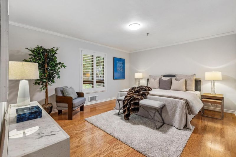 Park Terrace is a thoughtfully designed 13-unit boutique condominium building situated in the Belmont hills. This rare 2BR/2BA end-unit has been beautifully upgraded and meticulously maintained. Additionally, there is no unit above or any common walls. An extremely spacious living room features crown molding, recessed lighting, bamboo flooring and a decorative fireplace. A covered corner balcony provides an area for outdoor enjoyment. Formal dining area with a wet bar and a pendant chandelier. Sparkling remodeled kitchen with raised panel cabinets, blue pearl granite counters, full tile backsplash and white appliances. Large primary bedroom with hardwood flooring, a walk-in closet and plantation shutters. Primary bath with dual vanities and a large, tiled shower. Second bedroom with a custom built-in home office. Adjacent hall bath with a shower over tub. Tiled entry and hallway. Full-size washer & dryer plus substantial closet space. Two-car side-by-side parking in a gated garage. Building amenities include a community room, exercise room, storage room and a rear lawn. Convenient access to Highway 92 and the trails of Water Dog Lake Open Space. Award winning Belmont schools.