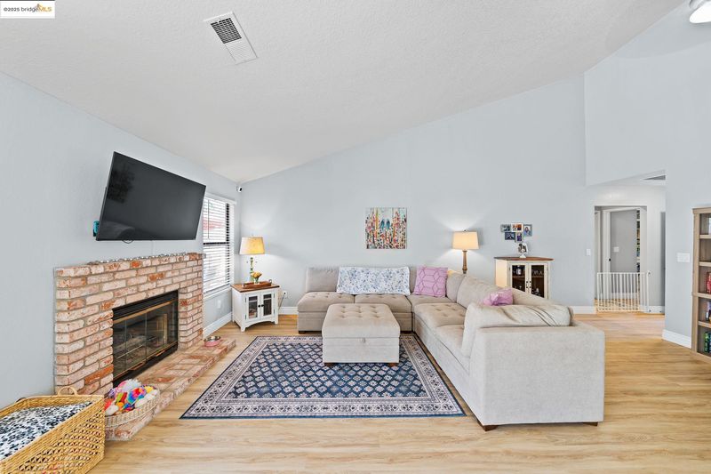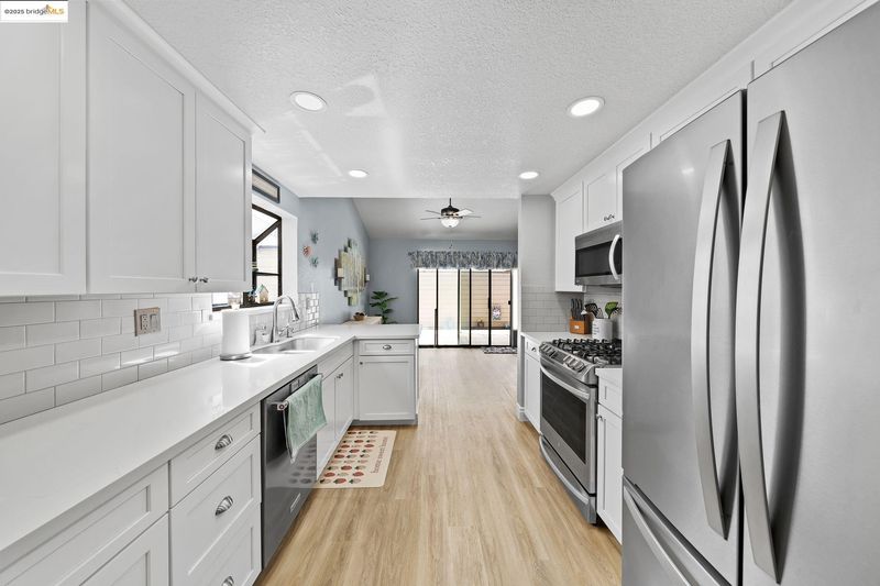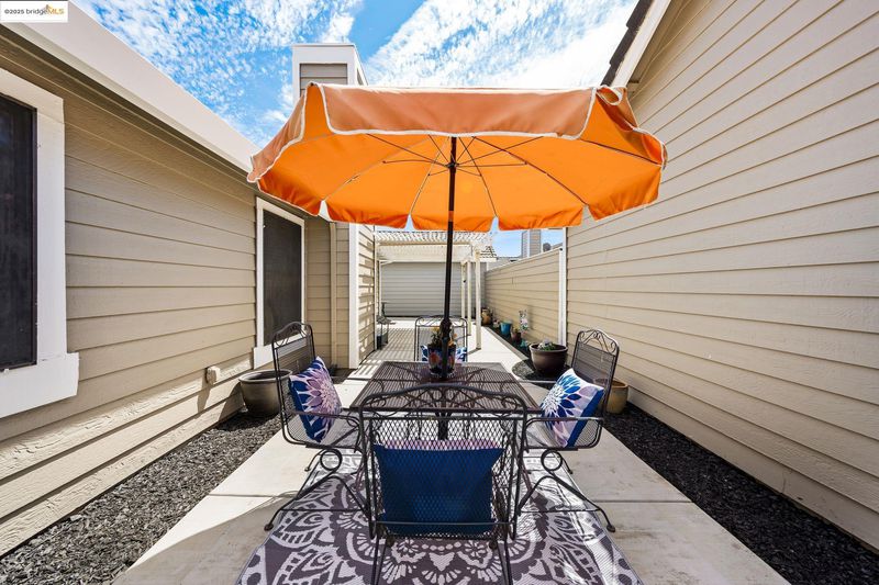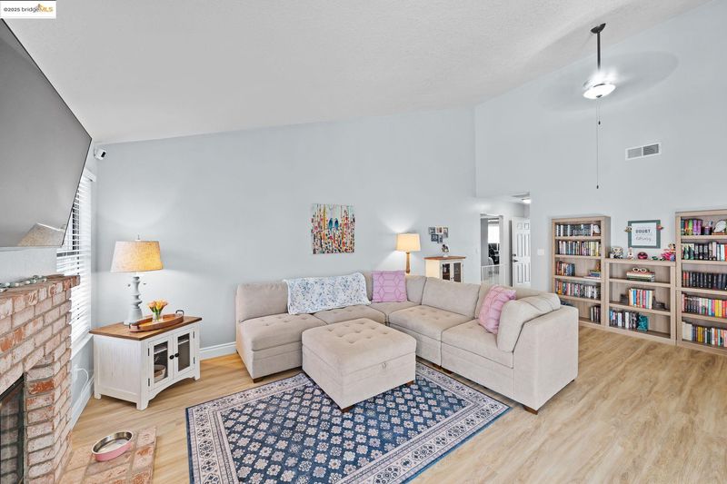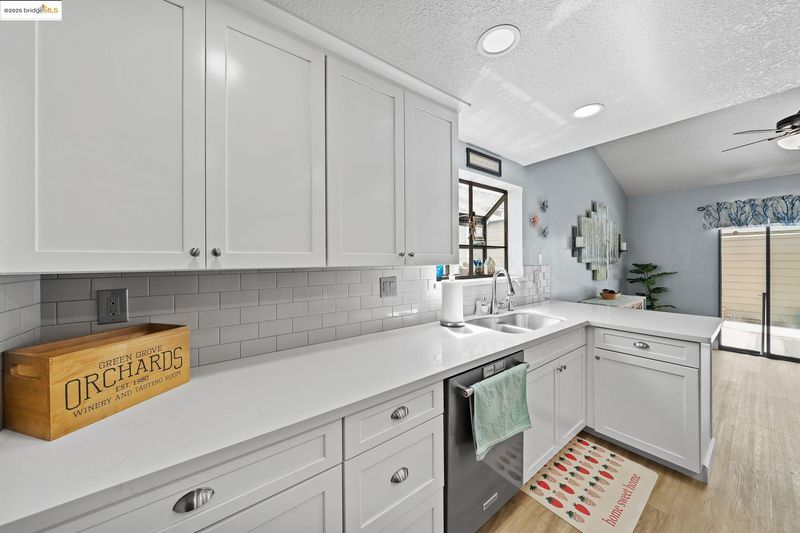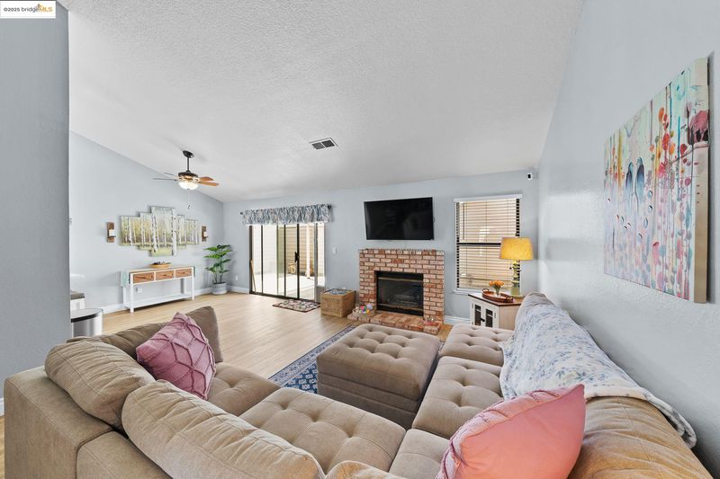 Discover effortless style and comfort in this beautifully updated 2-bed, 2-bath single-story home on desirable Camborne Drive. The 1,220 sq ft of light-filled living space feels expansive thanks to vaulted ceilings and an open-concept flow. The modern kitchen is a chef's dream, featuring quartz countertops, subway tile backsplash, stainless steel appliances, and bar seating that opens to the living and dining areas, complete with a cozy brick fireplace and custom built-ins. The spacious primary suite offers vaulted ceilings and a refreshed ensuite. Outside, relax in the private, low-maintenance courtyard with a charming pergola and concrete patio. This turnkey gem includes central HVAC, a garage fridge, and a prime location with easy access to shopping and freeways, offering the perfect blend of comfort, style, and function.