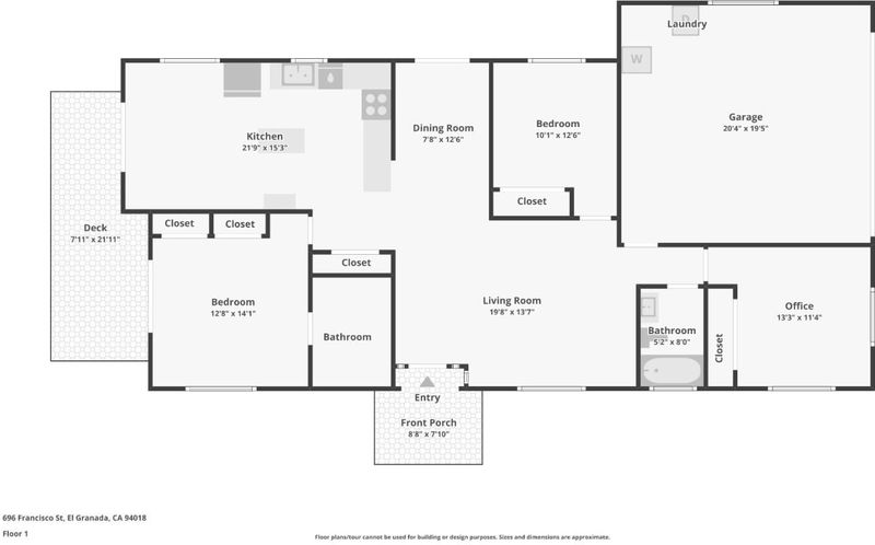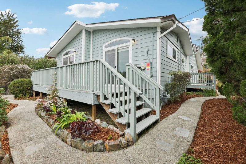 Finding a single-level, ocean-view home this close to the beach is a true unicorn. Welcome to 696 Francisco, a tastefully updated and impeccably maintained coastal bungalow in the coveted sunbelt of lower El Granada. Warm, solid bamboo hardwood floors and abundant natural light create an inviting, airy atmosphere throughout. The open-concept kitchen, living, and dining areas flow seamlessly together, offering effortless everyday living and easy entertaining. Large windows frame beautiful ocean views, while the primary bedroom serves as a peaceful retreat with its own ocean outlook and tastefully updated en suite bath. Set on a desirable corner lot with prime, southwest exposure, the home is bathed in sunshine from morning through evening. Step outside to an expansive deck, perfect for relaxing, dining al fresco, and enjoying vibrant coastal sunsets. Thoughtful sustainability features include fully paid solar, central gas and zone-based electric heating for maximum efficiency, durable Hardie-plank siding, copper gutters, and a beautifully designed low-maintenance garden. Located less than ½ mile to the beach and the legendary Coastal Trail, this is effortless coastal living at its very best.