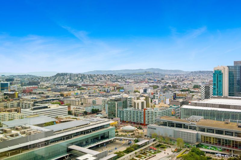 High-floor residence with sweeping south- and west-facing skyline views overlooking Yerba Buena Gardens. Bright living and dining area opens to a gourmet kitchen, ideal for entertaining. Primary suite features a marble spa bath and custom walk-in closet; second bedroom is adjacent to a full marble bath. Cherry hardwood floors, powder room, in-unit washer/dryer, and excellent storage throughout. Full-service living with 24-hour concierge and butler service, valet parking, indoor pool, fitness center, and Remède Spa. Prime location near SFMOMA, Moscone Center, and Oracle Park.