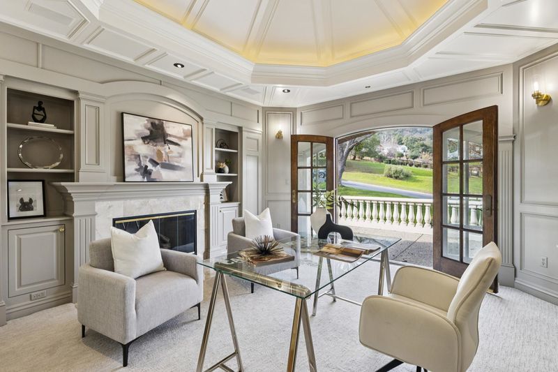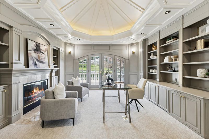 THIS IS IT! Exceptional custom estate offering 5 bedrooms, 4 full baths, and 1 partial bath on a rare 1.10-acre lot. Approx. 5,828 sq. ft. of living space with main-level primary suite and office. Timeless Tudor-style architecture with meticulously landscaped grounds. Featuring a grand double-door entry leading to a foyer with a soaring ceiling, chandelier, and decorative architectural columns. Cherrywood flooring throughout the kitchen, formal dining room, entry foyer, and hallway. Formal dining room with wainscoting and custom lighting. Living room with vaulted ceilings, a gas fireplace, built-in display shelving, and French doors. Expansive remodeled kitchen with dual islands, full backsplash, walk-in pantry, Thermador professional appliances, Sub-Zero refrigerator, and breakfast nook. Family room with coffered ceiling and dramatic two-way fireplace set in an elegant stone centerpiece. Featuring a main-level primary suite with a private patio, vaulted ceiling, spa-style bath, and oversized walk-in closet. Finished four-car garage with epoxy floors, workshop, and a flex space, utility sink. With a temperature-controlled wine cellar. Resort-style backyard with pool, waterfall, spa, multiple patios, mature trees, and a serene, wooded setting.