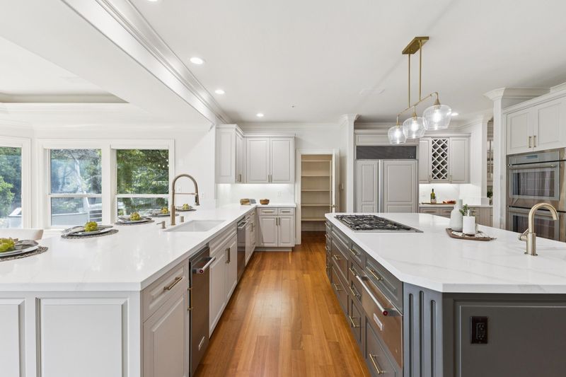 Dishwasher, Double Oven, Gas Range, Plumbed For Ice Maker, Microwave, Oven, Refrigerator, Dryer, Washer, Breakfast Bar, Breakfast Nook, Counter - Solid Surface, Eat-in Kitchen, Disposal, Gas Range/Cooktop, Ice Maker Hookup, Kitchen Island, Oven Built-in, Pantry, Updated Kitchen